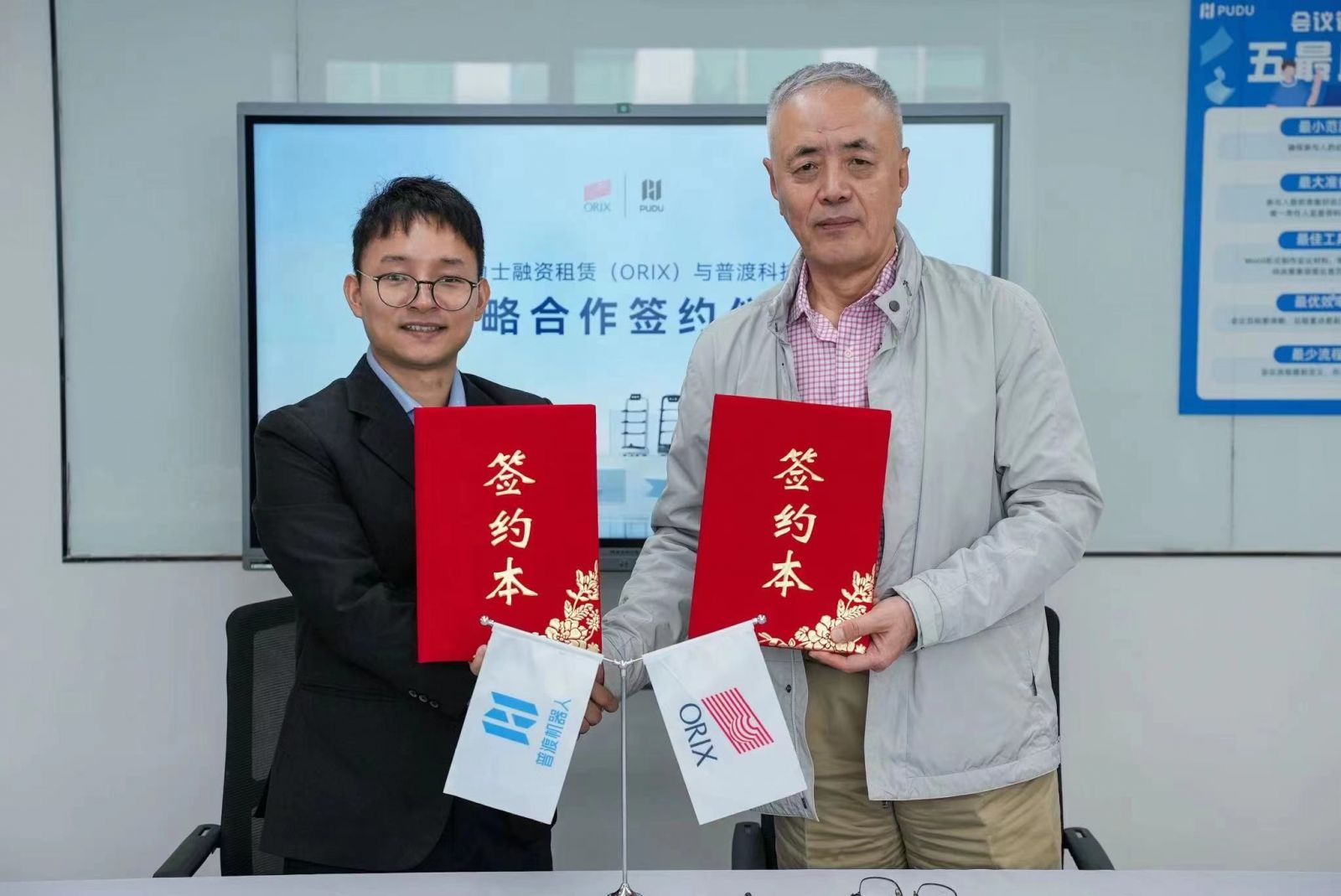 11月23日,欧力士融资租赁(中国)有限公司(以下简称OCC)与深圳市普渡科技有限公司(以下简称普渡科技)在深圳举行战略合作协议签约仪式。OCC董事长兼总裁刘志强、副总裁何巍,普渡科技董事长张涛、董秘叶金秋等领导出席。