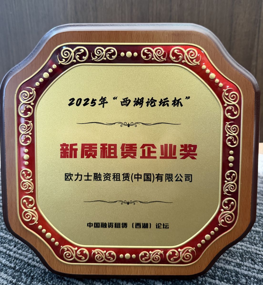 11月19日,由中国融资租赁(西湖)论坛主办的2025年“西湖论坛杯”颁奖典礼在武汉成功举办,欧力士融资租赁(中国)有限公司(以下简称欧力士租赁)凭借专业化、创新化的经营能力荣获“2025年新质租赁企业奖”。这是继2022年“租赁企业创新成就奖”、2023年“最佳资产运营奖”、2024年“租赁企业管理奖”后,欧力士租赁第四次获得殊荣。